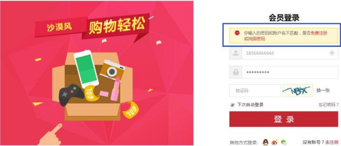 此外,錯誤提示還可以通過載入一個新的頁面來報告給用戶。比如在你點擊提交按鈕以后進入下一個頁面才知道自己剛才的輸入發(fā)生了錯誤。用戶可以通過閱讀提示知道如何更正問題,但是如果想更正這個問題就要點擊后退按鈕,這樣錯誤提示又不存在了,這點和彈出框很像。下面這個例子比較典型,用戶只知道沒有綁定成功,但是不知道具體的失敗原因,重新綁定也無法避免再次失敗。