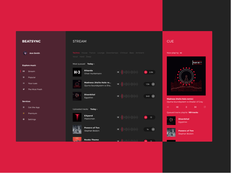 音樂流媒體服務(wù)類產(chǎn)品通常還會(huì)包含諸如個(gè)人頁(yè)面、播放列表、搜索頁(yè)和音樂商店之類的區(qū)域。通常,最新、最流行的音樂和相關(guān)的新聞會(huì)在首頁(yè)上呈現(xiàn),有的還會(huì)添加用戶推薦的音樂列表。
