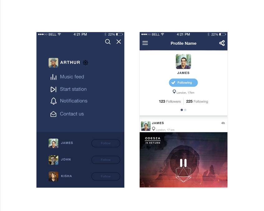 如果這一音樂服務(wù)還提供了關(guān)注藝術(shù)家、用戶之間互相關(guān)注的功能的話,還可以考慮設(shè)計(jì)一個(gè)訂閱頁(yè)。在訂閱頁(yè)當(dāng)中,用戶能夠看到哪些藝術(shù)家又發(fā)布了新專輯,哪些好友點(diǎn)贊了某一首歌,這些新聞或者新信息能夠讓音樂服務(wù)的社交屬性更濃。設(shè)計(jì)師應(yīng)該盡量讓信息流簡(jiǎn)明清晰,讓用戶能夠更好更快速地掃視。