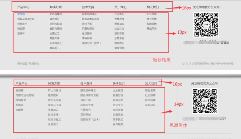 各種字體在網(wǎng)頁設計使用過程中,不一樣的字體同樣大小字號下,視覺的差異性非常明顯,如下圖對比: