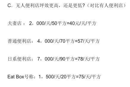 就坪效來(lái)看,無(wú)人便利店并沒(méi)有優(yōu)于諸如7-11之類(lèi)的日系便利店,而目前20萬(wàn)一個(gè)的便利店盒子(20平大小)的投入成本也遠(yuǎn)遠(yuǎn)高出了一家90平的普通便利店。雖然無(wú)人便利店在資金、人力成本方面確實(shí)能占據(jù)些優(yōu)勢(shì),但即使是4個(gè)人能維運(yùn)40家店,或者按另一說(shuō)法,2個(gè)人能維持7家店的運(yùn)營(yíng),其硬件上的巨大投入,從很大程度上幾乎毫不費(fèi)力地能夠覆蓋掉費(fèi)心費(fèi)力想要剩下來(lái)的租金、人力成本,從提升效率上來(lái)看,較于7-11等連鎖便利店也并沒(méi)有明顯的改善。