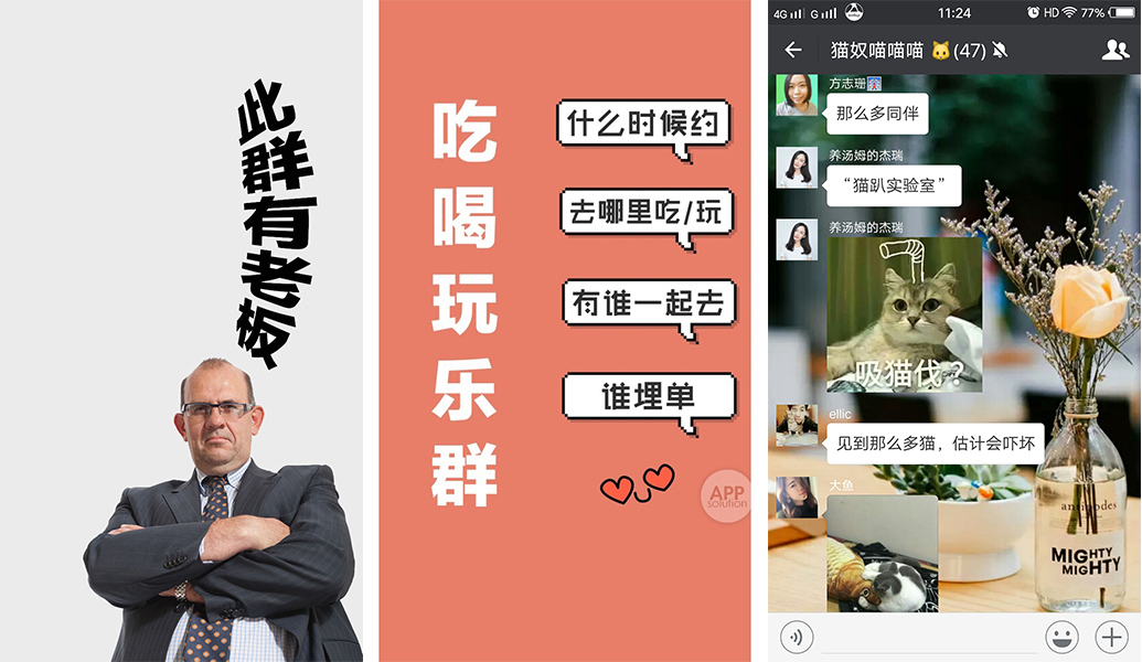 他們加入了很多同學群和興趣群,比如「貓奴喵喵喵