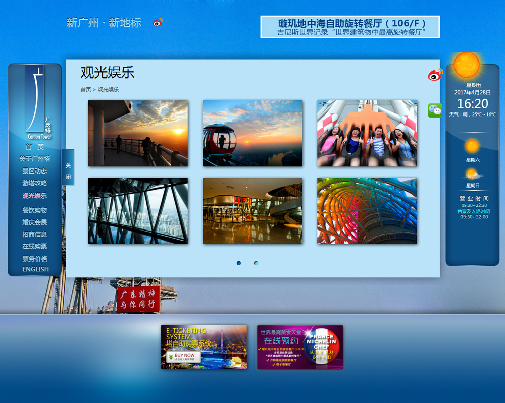 廣州塔是一座集都市觀光、時(shí)尚餐飲、至高游樂、影視娛樂、婚慶會(huì)展、環(huán)??破铡⑽幕逃?、購物休閑等多功能于一體的、具有豐富文化內(nèi)涵的大型旅游觀光建筑,成功打造為一個(gè)世界一流水平的旅游景區(qū)。廣州塔采用了當(dāng)代最優(yōu)秀工程設(shè)計(jì)和最新施工技術(shù),以其獨(dú)特的建筑造型與世界新高度,依托其得天獨(dú)厚的旅游資源。