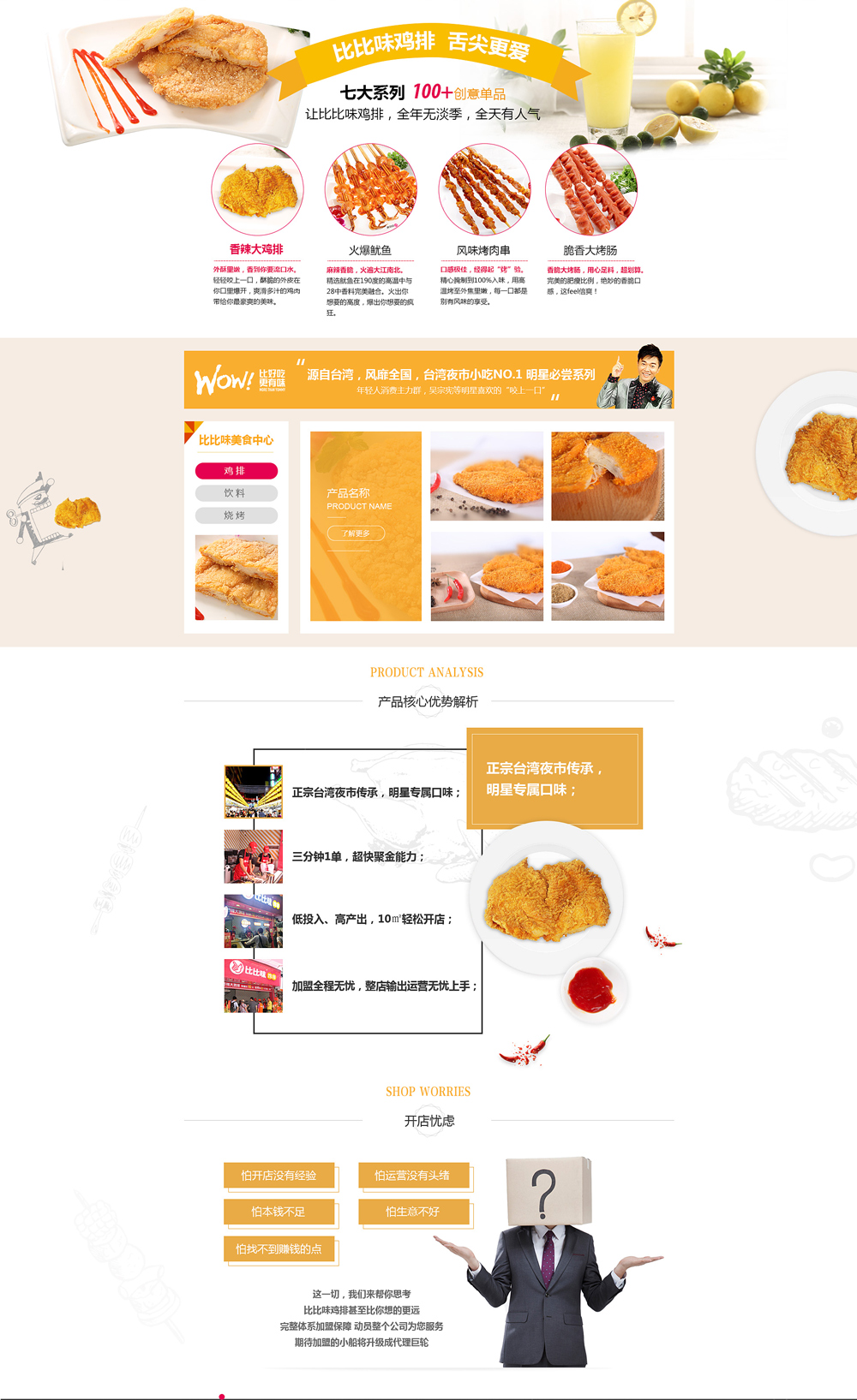2015年,公司啟動(dòng)了以臺(tái)灣正宗夜市口味top1的比比味雞排,依托精準(zhǔn)的高頻年輕受眾定位,完善的出品研發(fā),快捷倉(cāng)儲(chǔ)配送體系,迅速在全國(guó)范圍內(nèi)掀起一股餐飲熱潮,目前已開(kāi)了300多家門店.