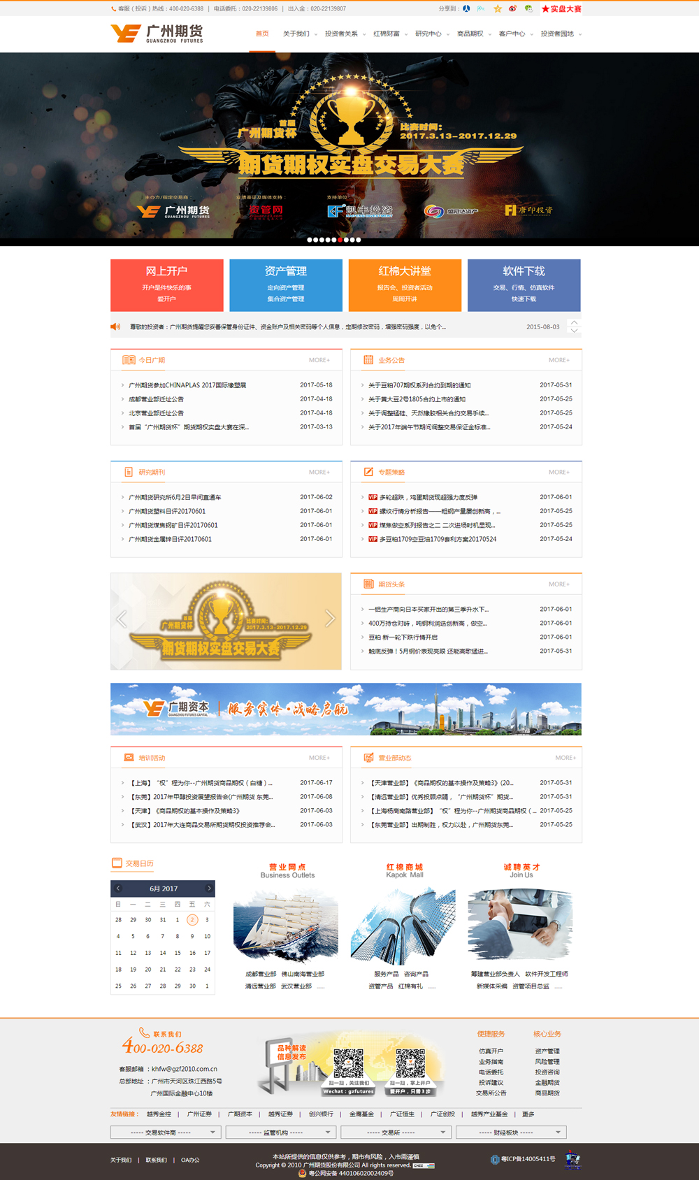 廣州期貨在全國各主要城市均設有營業(yè)部,基本形成了立足珠三角,輻射全國的經(jīng)營網(wǎng)絡。