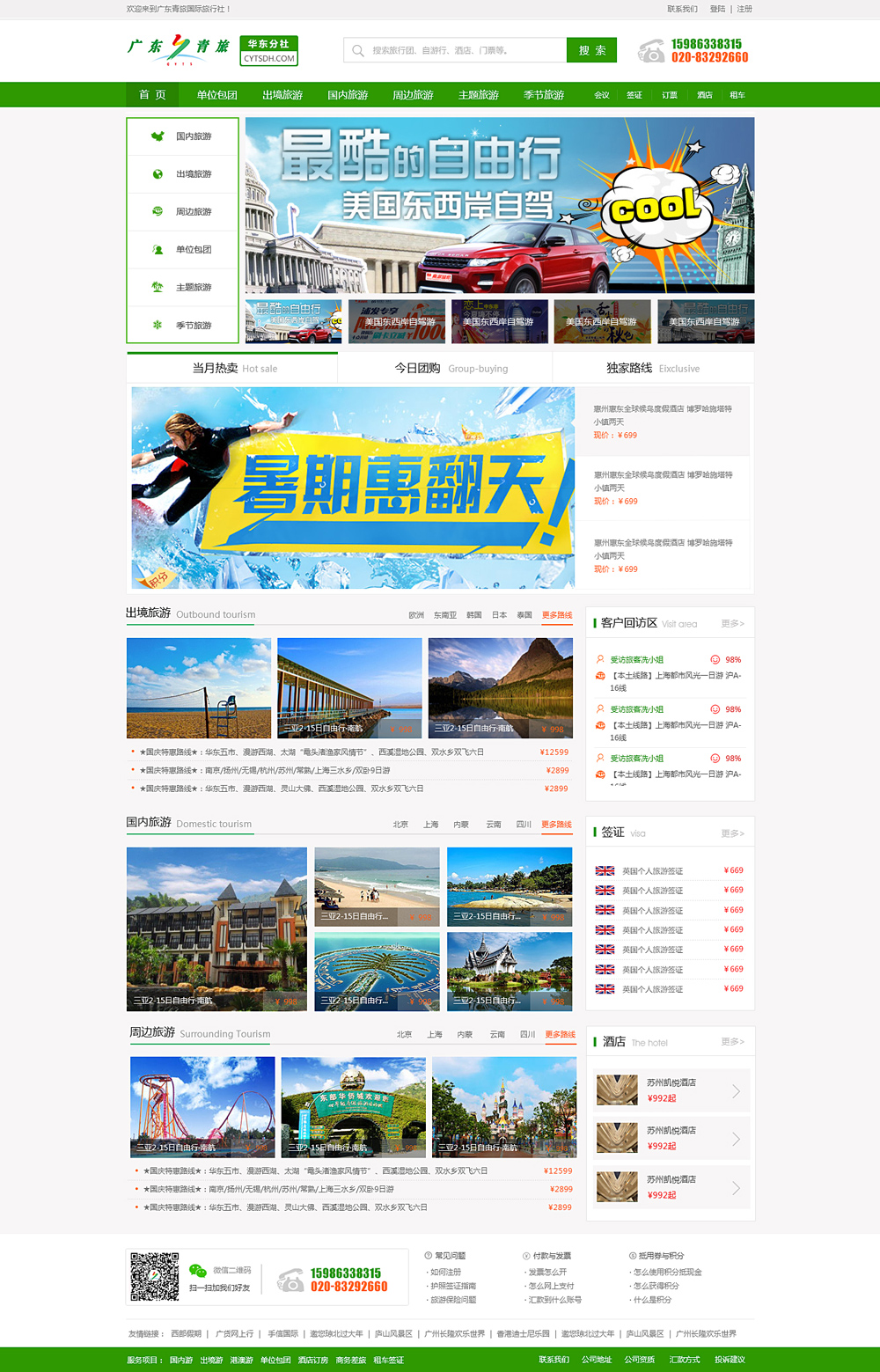 青旅服務(wù)網(wǎng)絡(luò)延伸至全國各地,廣東省內(nèi)設(shè)置四十多個分支機構(gòu),并擁有自己的旅游車隊。旅游資源進行集團化采購,對客戶進行跟蹤服務(wù)。常年經(jīng)營有特色的旅游產(chǎn)品,如自駕車旅游、商務(wù)會展、獎勵旅游、紅色旅游、高爾夫休閑游、自行車漫游、星級郵輪環(huán)球游、夏令營活動、中小學(xué)校春游秋游和世界各國青年交流活動等,是華南地區(qū)最大的入境自駕車旅游組團社,歐洲游專線和巴厘島游專線重要的批發(fā)商,是世界遺產(chǎn)地廣東丹霞山、開平碉樓和湖南莨山,廣州塔、長隆歡樂世界等著名景區(qū)的最佳合作伙伴。