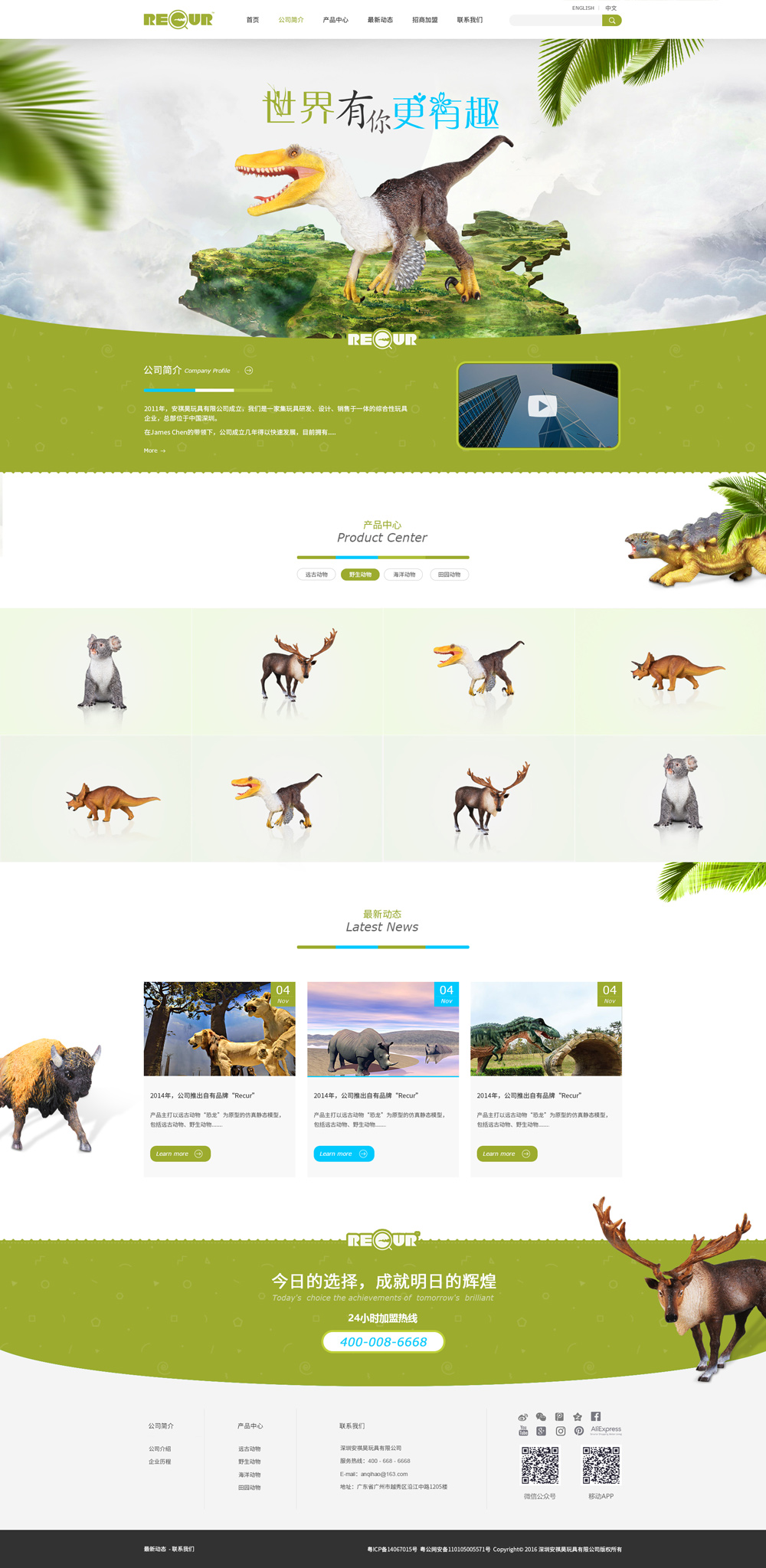 2014年,公司推出自有品牌“Recur”,產(chǎn)品主打以遠(yuǎn)古動物“恐龍”為原型的仿真靜態(tài)模型,包括遠(yuǎn)古動物、野生動物、海洋動物、農(nóng)場動物等幾大系列,產(chǎn)品設(shè)計的理念“品質(zhì)、安全、愛心自然、快樂”,力求通過仿真模型“近距離的接觸”,培養(yǎng)兒童對自然生命的認(rèn)知,從小對地球生態(tài)、環(huán)境的重視,同在一片藍(lán)天下,與自然界其它生命體和諧共處方能生生不息,這也是我們品牌的核心價值!